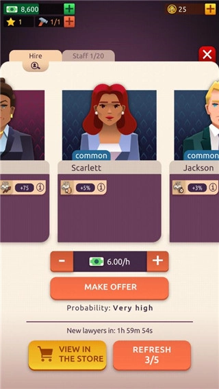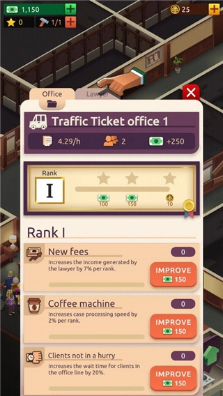 法律帝国大亨最新版是由Codigames推出的一款模拟经营,玩家将扮演一位新晋律师,从经营一家小型律师事务所开始,通过不断接收案件、赢得官司来提升事务所的声望和规模,在法律界逐步建立起自己的商业版图。
