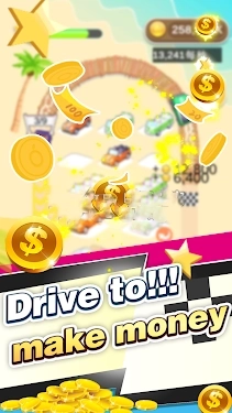 这是一款融合了合并与放置玩法的汽车主题游戏,通过合并汽车能让它们速度更快,从而更高效地产生金币。
