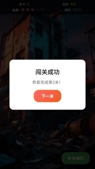 3、每一关都得消灭规定数量的匪徒方可进入下一关,难度会慢慢加大,来挑战你的极限吧!
