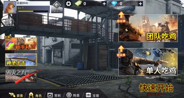 2、包含团队吃鸡与单人吃鸡两大模式,你可任选其一,领取新手礼包后即可开启作战。