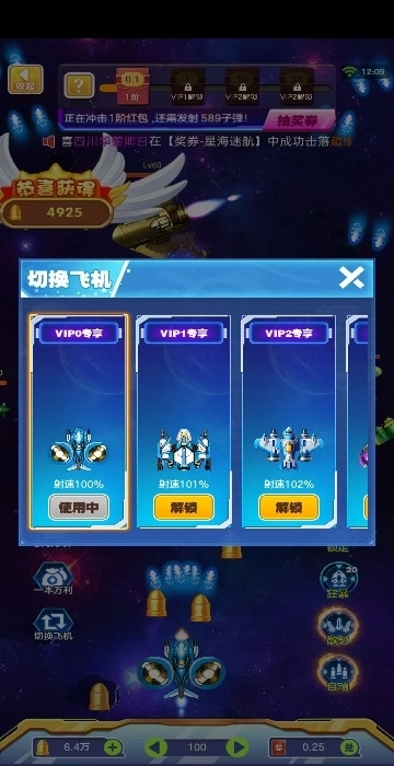2、拥有多样的战机种类,每款战机或许具备独特的属性和技能,玩家需科学组合来应对各异的敌人与战场状况。
