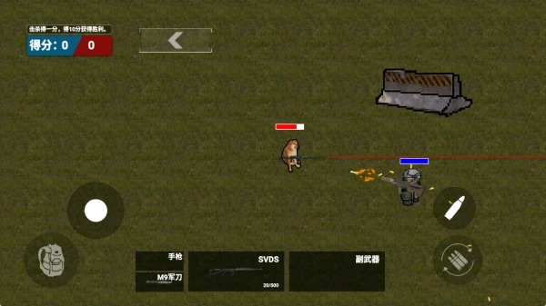1、玩家借助摇杆操控狗狗移动,用右手点击按钮进行开火射击,在遭遇敌人时,瞄准头部射击能达到最佳效果。