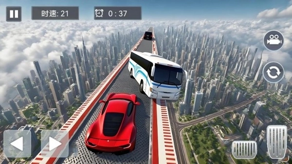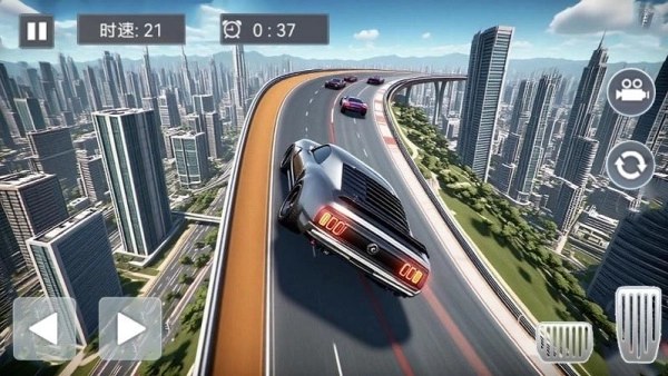 1、进入游戏后,先熟悉基础操作:左下方的左右按钮用于控制车辆方向,右侧则设有前进加速和刹车按钮。