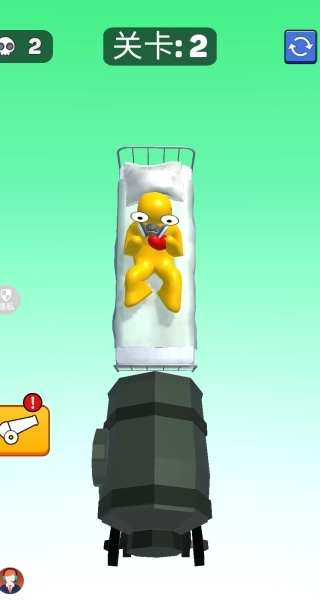 2、面对被困住的可怜小人,我们需要调整炮台的角度与力度,发射弹丸借助物理弹射效应来解救小人,从而完成救援任务。