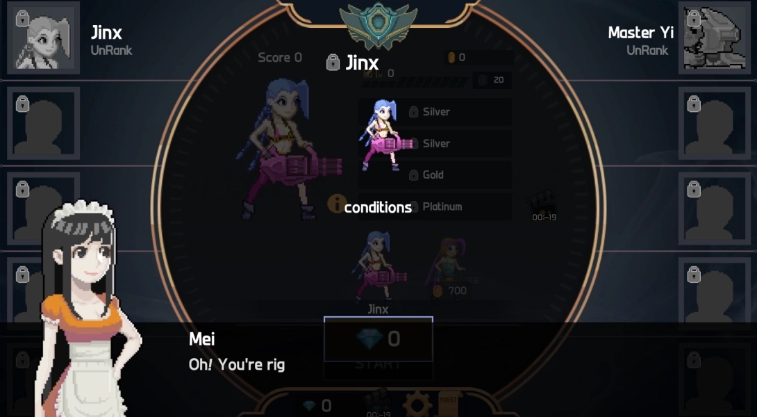 3.这是一款以2D画面为基底的横版冒险游戏,里面收录了多个英雄联盟角色供玩家选用。像素风格的画面让游戏操作起来更为顺手,玩家可以通过移动、跳跃与攻击的组合,来对抗英雄联盟里的各类野怪和小兵。