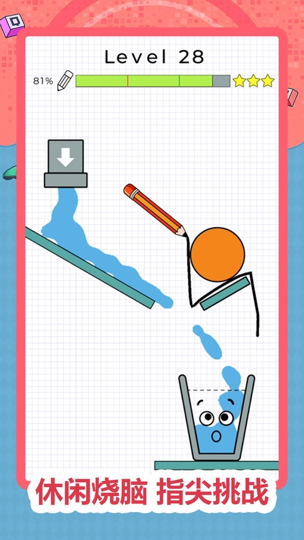 2、每个关卡都经过精心设计,需要综合考虑液体的起始位置、目标容器的摆放以及场景中障碍物的分布情况,液体的流动完全依照物理重力规律来进行。