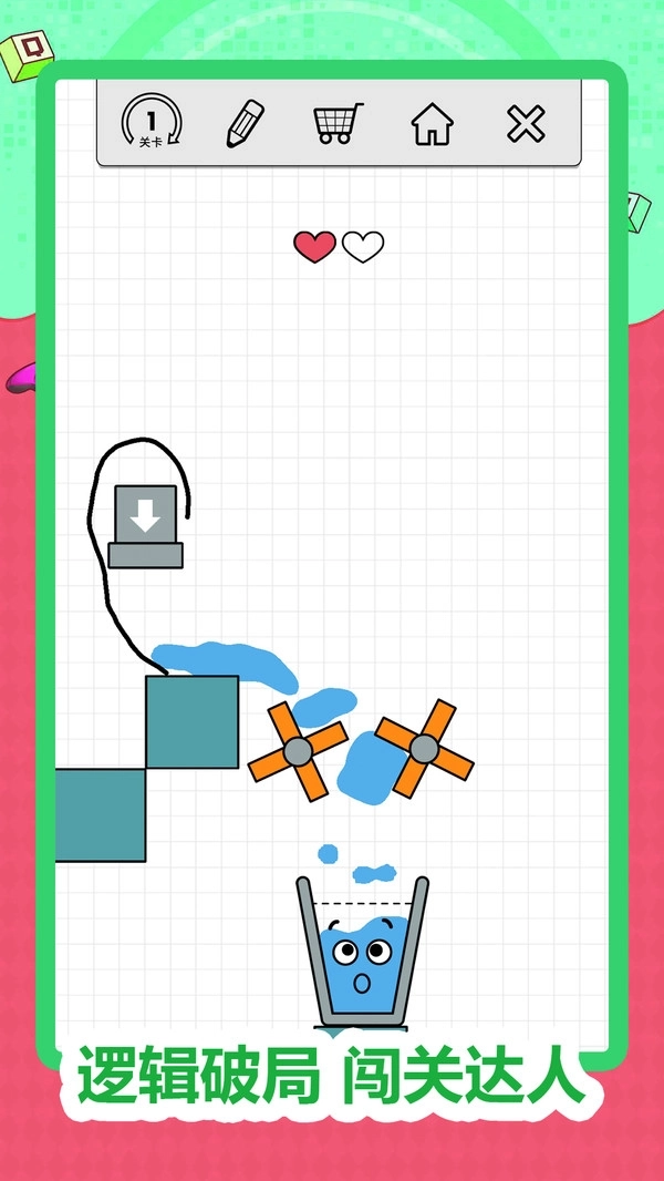 1、在屏幕的任意位置进行触控操作即可创建引导线,以此保证液体能够精准地流入目标容器,从而顺利完成关卡。