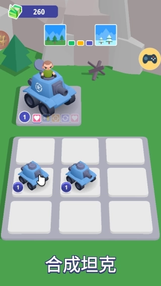 1、在关卡的准备环节可以采购坦克单位,将相同型号的坦克进行合并就能完成升级,从而得到性能更为强劲的进阶战车。