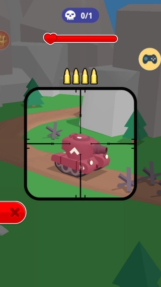 2、核心操作涵盖坦克的移动与射击系统。借助虚拟摇杆能达成精准位移,点击“瞄准”键即可进入精密射击模式。