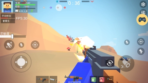 1、配备双摇杆操作系统,左侧虚拟摇杆负责操控角色的移动路线,右侧功能区域则整合了视角调节、精确瞄准、射击启动、战术动作(跳跃/下蹲)以及武器切换等关键操作功能。