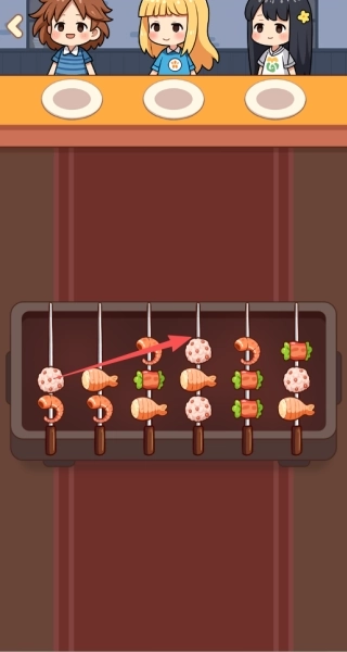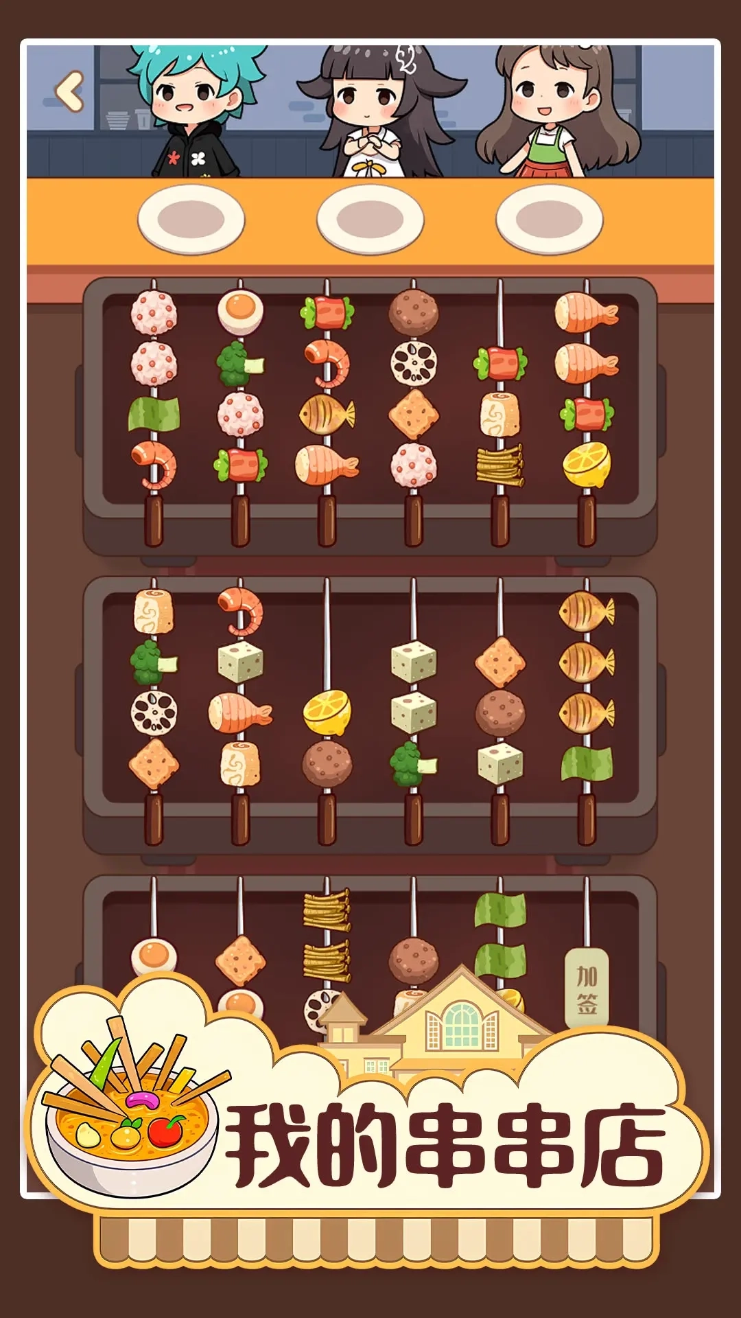 2、按照顾客的订单实时制作相应的串品并完成交付,以此获得的金币收益将作为店铺运营和升级的核心资金来源。