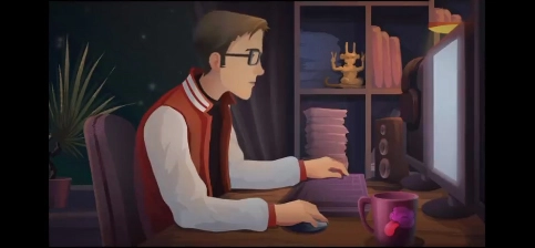 3、主人公安吉洛正在剪辑创造他的视频