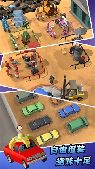 1、这是一款以废旧汽车厂经营为核心玩法的小游戏,玩家的目标是回收更多的废旧汽车。