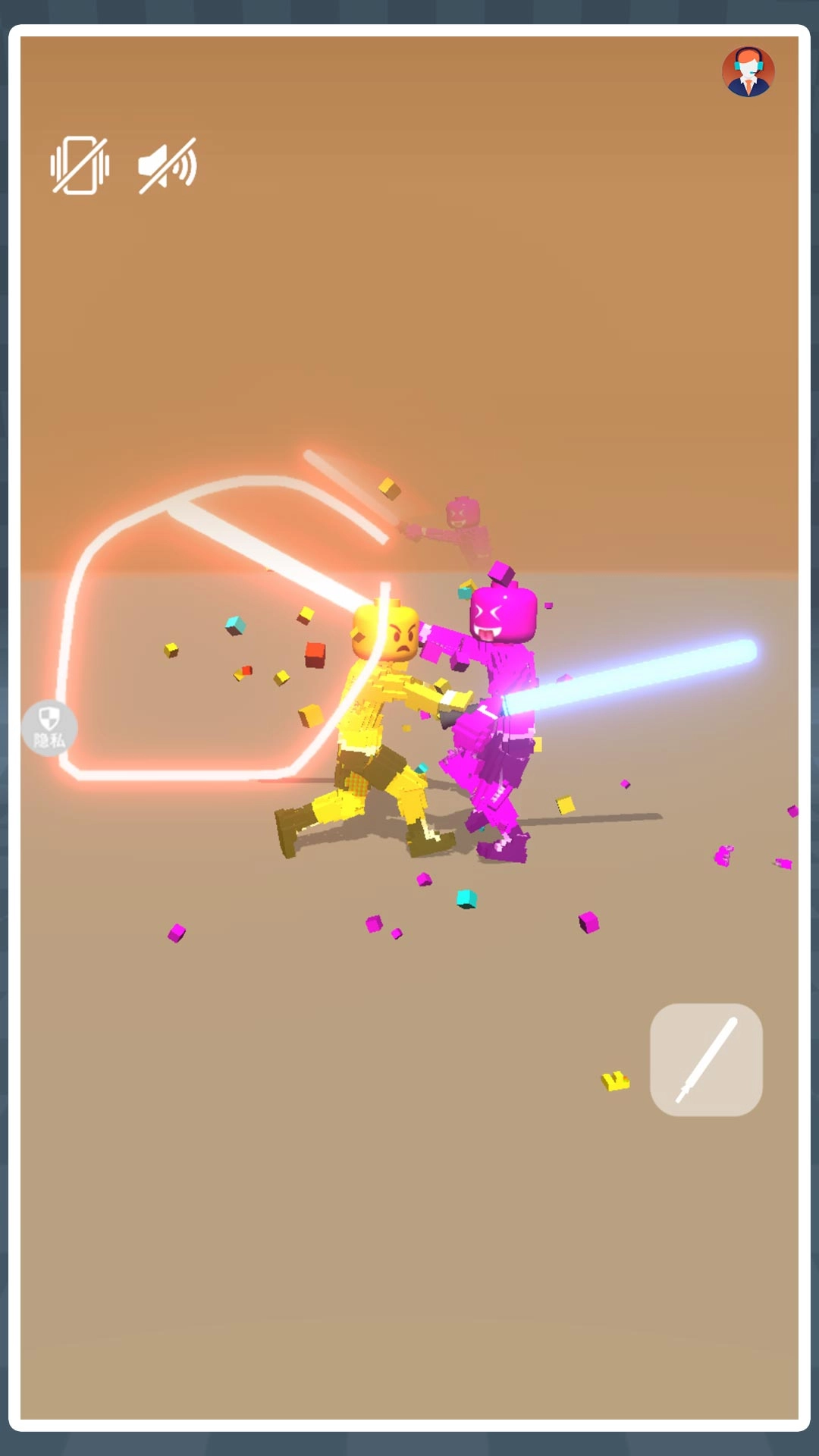 2.游戏以极简的橡皮人形象与华丽的光剑特效形成鲜明视觉对比,构建出一个专注于操作与策略的动感世界。