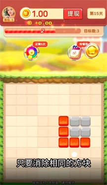 【点击消除】玩家需要点击屏幕上的相同方块,将它们消除并获得分数。