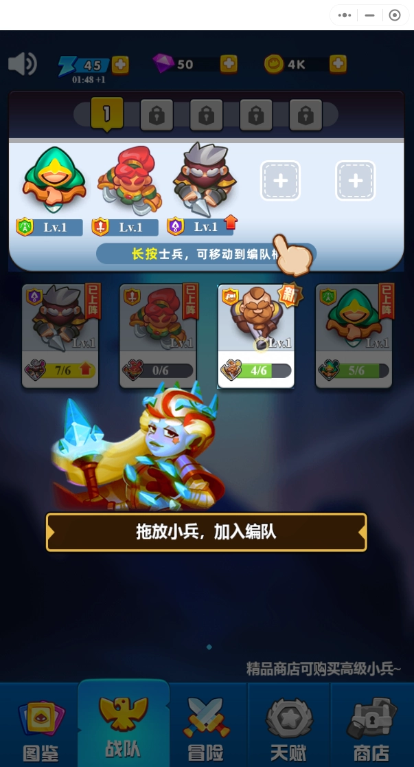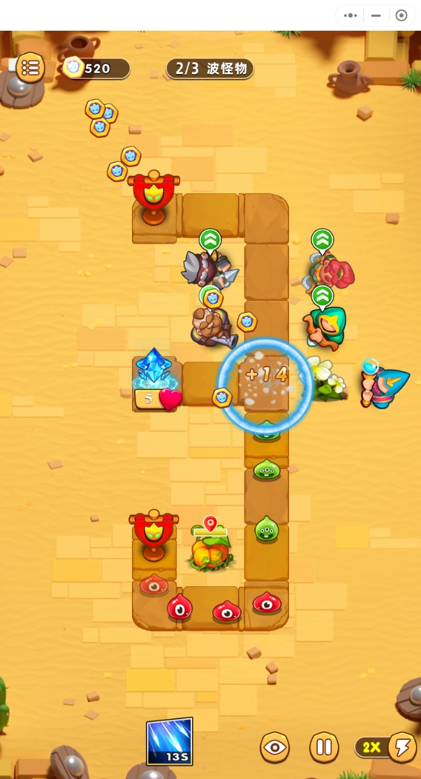 2.选择正确的小兵种植,各种魔法道具帮助你完成任务,不同的副本可进行自由战斗