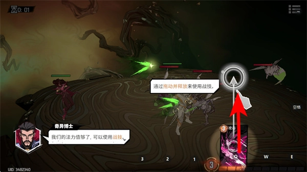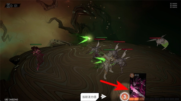 在战斗过程中留意法力值的情况,一旦数值足够就点击技能卡片,这是释放技能的核心步骤,技能能够对敌人造成大量伤害,迅速压制战场上具有威胁性的单位。