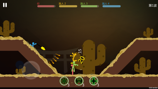 1、多样火柴人角色:拥有多款火柴人主角,各角色的技能与武器各异。部分角色擅长近战连击,部分则主打远程消耗,能满足不同的战斗偏好,给予玩家丰富的选择。