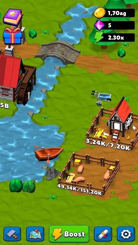 在这款游戏中,玩家将扮演农场小镇的经营者,致力于推动小镇的经济发展,不断扩大生产规模。你可以在自己的土地上种植作物,并在其成熟后在商城出售,通过收入购买更多土地,不断扩张你的农场范围。