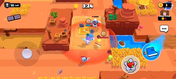 和一位朋友组队,共同对抗另外三支队伍。最终收集宝石数量最多的队伍将赢得胜利。获胜的队伍可以一起分享战利品,而失败的队伍也能获得相应奖励。游戏中包含任务、表情、皮肤、5v5模式以及排名模式等多种内容。每个角色都拥有独特的特殊技能。