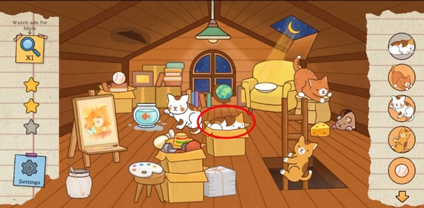 6.上下晃动手机,最后一只小猫咪就会出现在纸箱子里了。
