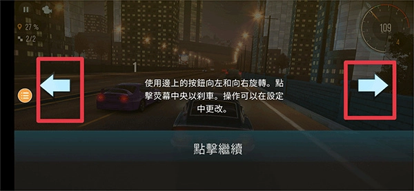 4、例如可选择按键操控模式,通过左右两侧的按键来控制方向,点击屏幕中间的区域即可实现刹车操作;
