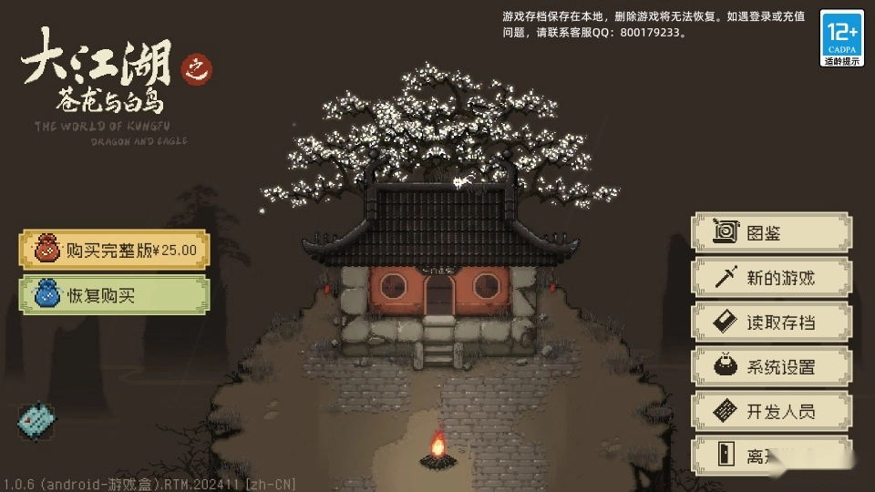 《大江湖之苍龙与白鸟》是一款让玩家穿越回古代化身大侠的武侠角色扮演冒险闯关游戏。游戏场景采用中式水墨风格打造,每一帧画面都精致绝美,尽显东方韵味。玩家进入2025最新版本后,能自由选择角色,沉浸式体验江湖日常琐事,开启专属于自己的武侠人生。还有各类趣味剧情与任务,等待着你逐一挑战!
