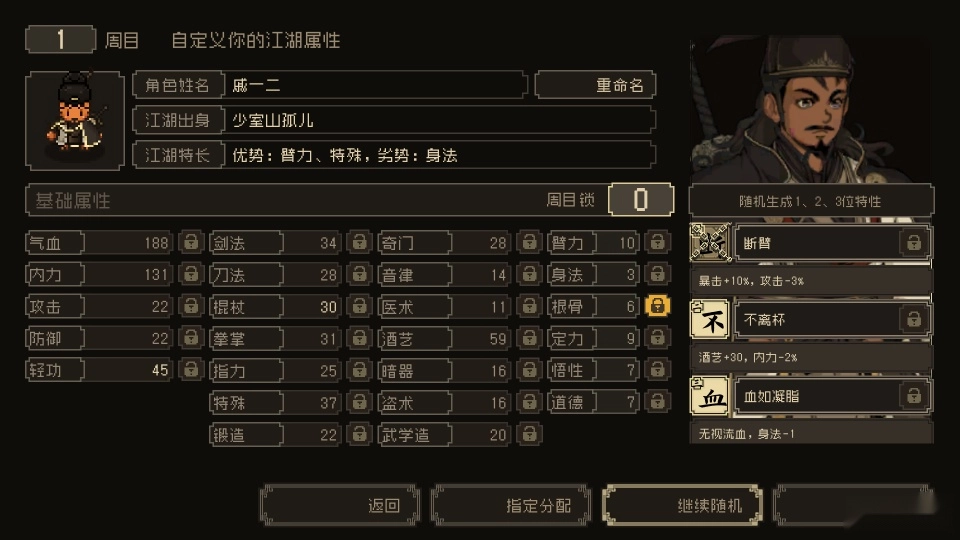 5、之后可以自定义你的江湖属性;