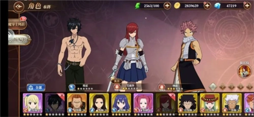 把露西换成艾露莎就行,纳兹和格雷是这套平民队伍里的输出与控制,各有特点。艾露莎在游戏里的魔法剑技能带有不动、霸体效果,在这套体系中,她承担坦克位置,构成铁三角阵容。