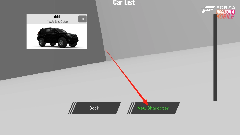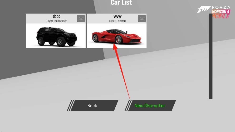 2、点击【NewCharacter】来选择新车辆