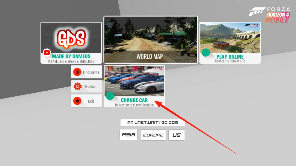 1、打开地平线4手机版游戏,点击【CHANGECAR】