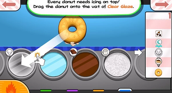 4、接下来是【糖霜】环节,把甜甜圈拖到对应的区域就可以了。