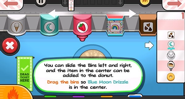 6、甜甜圈制作完成后,把【订单】拖到左边,就能交付给顾客了。
