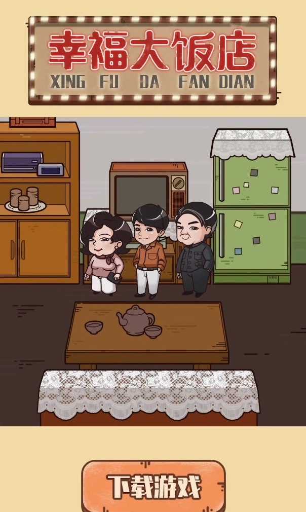 幸福大饭店是一款好玩的酒店模拟经营游戏,有着浓厚的八九十年代的味道,充满了回忆。玩家可以在幸福大饭店里开酒店,玩家会在幸福大饭店里解锁很多故事。一起努力把酒店做大。你需要用你的策略去帮助他们,合理经营,成为有钱的老板。