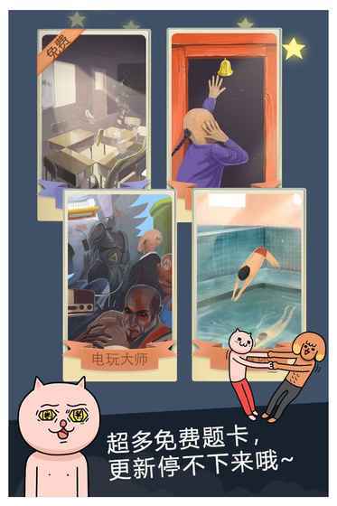 还在问这个版本哪里更新了的朋友呀,真得去看看眼科咯~整个都大变样啦,拜托!除了超好用的脏小白把游戏彻头彻尾重新绘制了一遍,超厉害的程序猿哥哥还搞出了个超酷炫的玩意儿——人脸识别。所以呢,现在每局游戏有一定概率会自动识别出表演小伙伴的人脸头像(别问我具体概率,我是文科生,大家就拼运气吧)。而且你们还能在“我的后花园”里尽情地编(e)辑(gao)这些小伙伴的表情图片,再分享给他们,不过分享出去后你还有没有朋友我可就不管咯~还有哦,程序猿夫人觉得把游戏视频整个发给朋友太耗流量,于是这个版本就有了“视频分段”功能。(这妥妥的妻管严呀…)你可以挑选游戏过程中某个词的视频分享出去,这样就很省流量啦~“自定义题卡”可是我专门送给疯狂来往疯狂粉丝的礼物,可不是人人都能有的哟~它可有不少“用处”呢,大家慢慢去发掘吧~这个版本一下子给大家更新了4套题卡,是不是超爱我呀?有选择困难症的少年们,这次给你们准备的“药”是“随机题卡”,祝你们幸福哟!对啦,你们说想要不限时模式和PK模式之类的,我和程序猿哥哥正想办法呢。你们动一动嘴,我们可就得累个半死…所以大家要耐心等待哈,我爱你们,就酱紫。