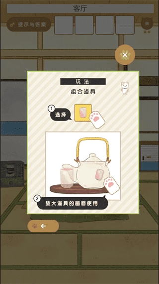 先到奶奶右后方的柜子上取到水壶,接着移步至左边的厨房场景,在水池边拿到水杯。双击水杯或者水壶,使其放大,然后把另一个物品点击到已放大的物品上,如此便能组合成茶,最后将茶递给奶奶。