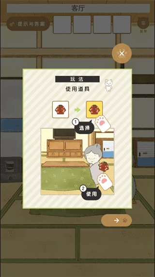 拿奶奶给的鸡毛掸子,去给卧室右上角的画清理灰尘。这两幅画拼在一起呈现出“夏”字,这是卧室蓝白条柜子给出的提示。按照提示,依次挑选刨冰、西瓜以及向日葵图案,便能打开柜子。而蚊帐放置在大厅的衣柜之中,用剪刀把绳子剪断,就能够拿到卧室摆放。