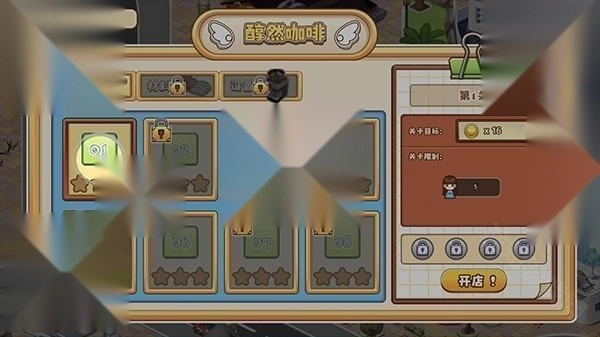 4、点击关卡1,开始开店