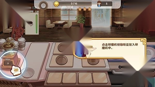2、点击研磨机,将咖啡豆放置其中,等待咖啡酒进行研磨。