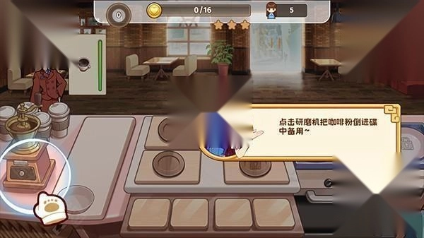 3、将磨好的咖啡进行冲泡,后面可以解锁牛奶等,加入咖啡中。
