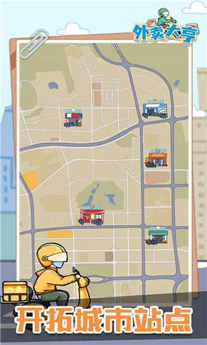 外卖大亨是一款模拟经营外卖配送的手机游戏。其核心特色在于高度还原外卖企业的成长历程,采用竖屏点击操作模式,单手即可轻松掌控。玩家需持续拓展外卖站点、招募配送骑手、面试产品经理,从而解锁更多合作店铺与客户资源,推动外卖公司逐步发展壮大。利用碎片时间简单操作,就能体验到轻松愉悦的游戏快感。不妨来尝试一下!