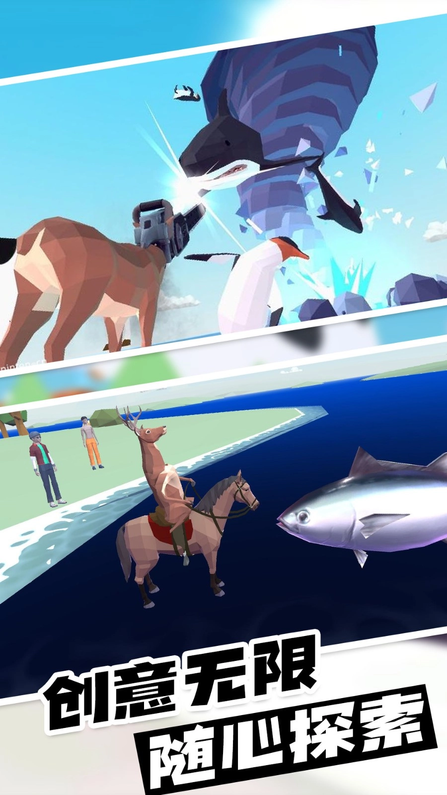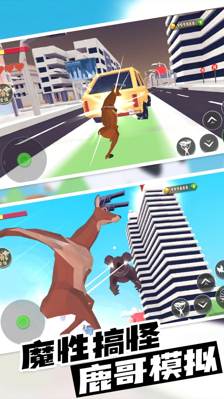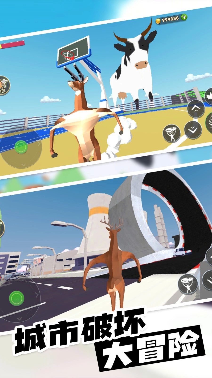 1、游戏里的冒险玩法超刺激,提升鹿的各项能力,到游戏中去把整个小镇都搞破坏吧;