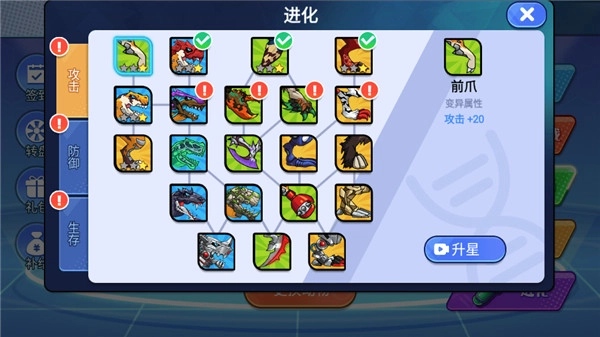 2、点击进化按钮后,你能够挑选机甲恐龙需要进化的部位,进而完成升星操作。
