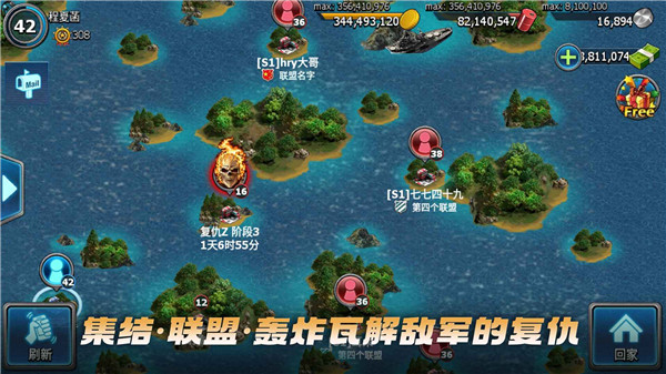 5、联盟:联盟玩法。加入联盟,参与联盟战争、跨服战争、扩张战争。获胜者将赢得荣耀,能够指挥众多联盟出征!