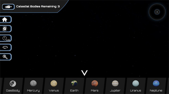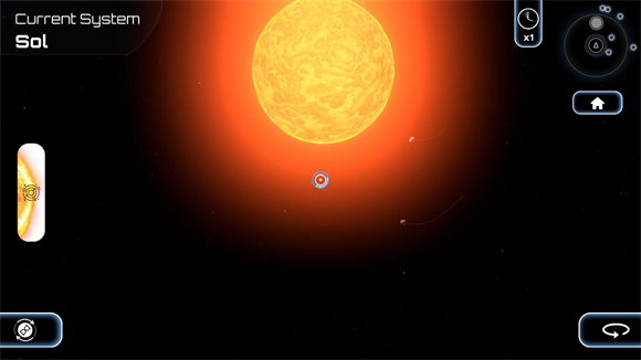 5、点击“explorer”进入探索模式后,玩家能够选择太阳系以探索宇宙的奥秘;在此模式下,还可以通过滑动右侧的进度条来改变太阳的状态,进而观察太阳系的变化。